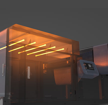 Con 5 calentadores y un área de secado grande, el sistema garantiza que  su proyecto se caliente uniformemente.