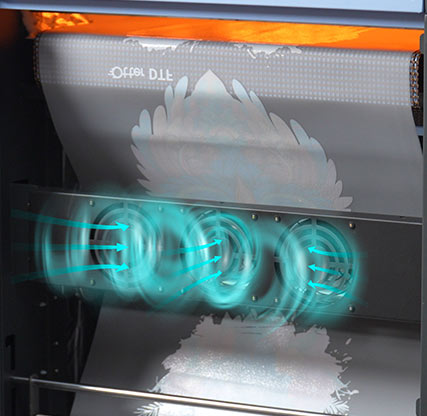 Después de hornear la película impresa, los ventiladores incorporados aceleran el enfriamiento de la película y mejoran la eficiencia del trabajo.